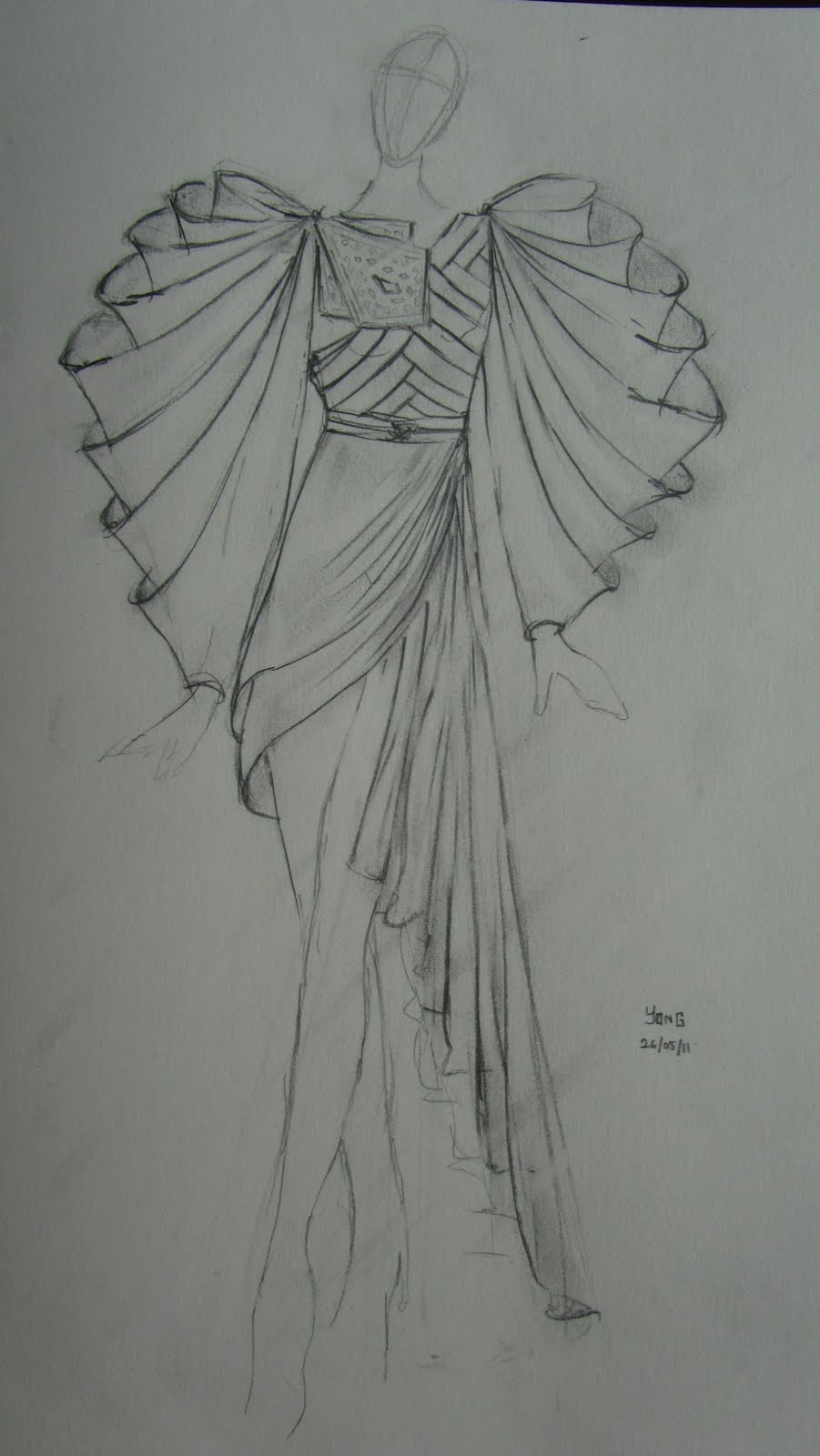This one started out with the sleeves. Then I added more and more and more. Then it became like an amour type design. So what would I make it out of? Was thinking about Silk satin and silk chiffon for the bottom bit (Red colour is nice). Then Black leather on the bodice with a brass plate. Sleeve would be silk Organza for a bit of structure. Colour. How about an ombre of red to black? I don’t know. I would not even know where to start if I were making this.