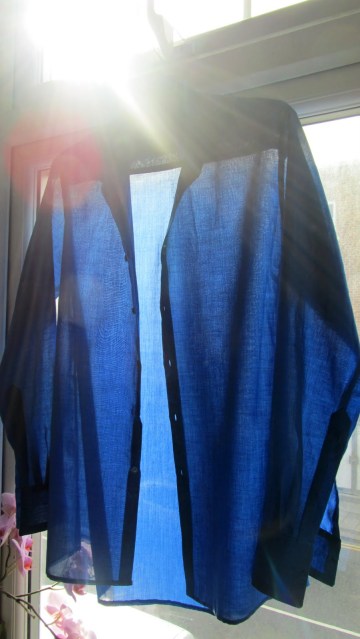 The Indian cotton blue shirt against a sunny window. (As I am typing this, the sun has disappeared!)