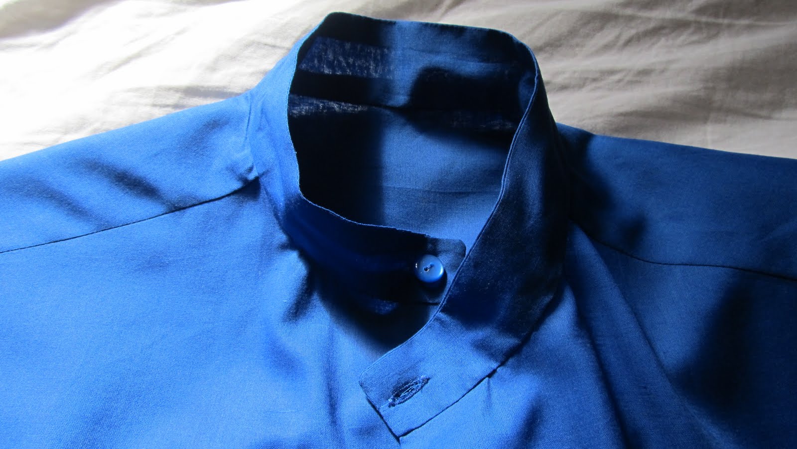 So I had this blue Indian cotton in my fabric box that I bought earlier this year. I had a wonderful design for it. This and that, twist and twirls, drape and tuck but at the end I decided I just want a simple plain shirt that I could wear over and over again. But this time I concentrated on the fit and the finishing. So all the seams were French seamed and where top stitching was required, I would just stitch it by hand to conceal the thread. All I need now is an excuse to wear it out.