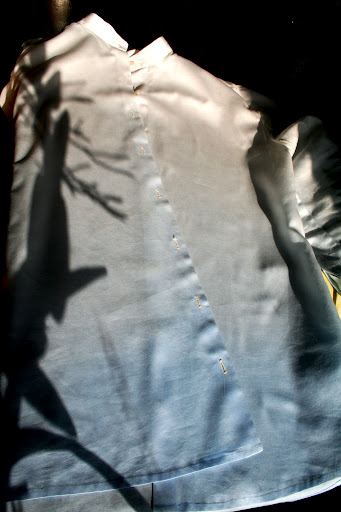 I’ve also put in this post a picture of my bad luck-good results shirt. A wonderful shirt I made for myself which I managed to ruin by washing it with a pair of red trousers! After bleaching it white, I decided to colour it blue but with an ombre effect.
