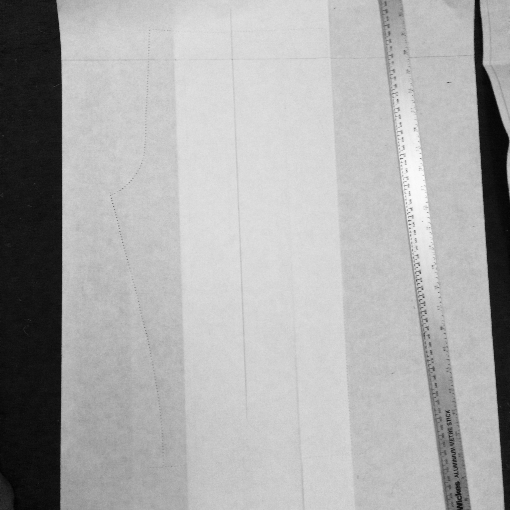 Once the trousers block has been traced on with a tracing wheel, I opened up the pattern and drew the outline of the pattern.