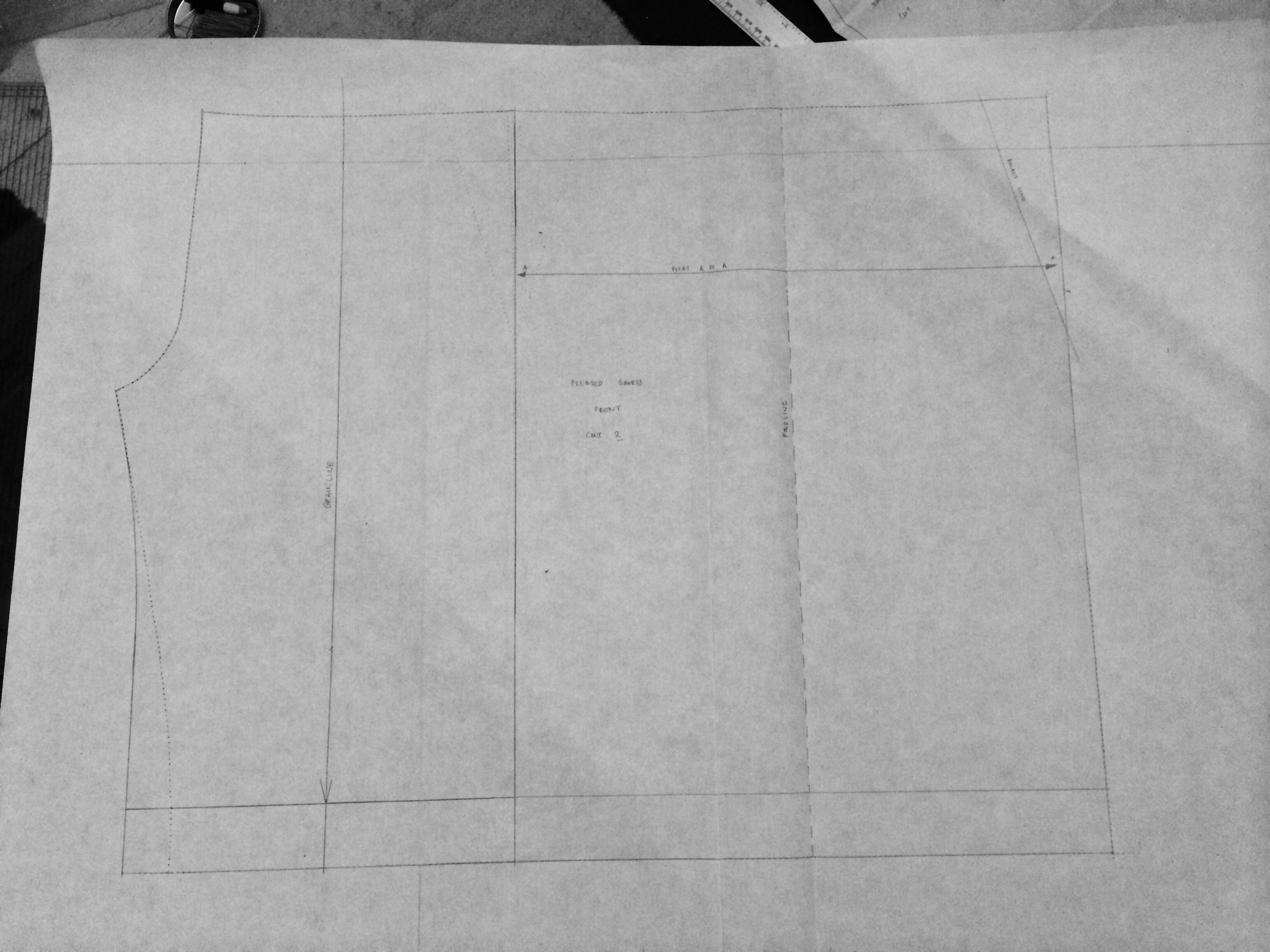 I started out trawling the internet for examples of this look so I can gauge the proportion and style. I knew I wanted something baggy but at the same time, I wanted it to look expensive. I decided that the best way to add volume while maintaining the tailored shorts shape was to add a pleat. I did this by pleating a piece of paper while overlying my front trousers block on top to ensure that the depth of the pleat did not exceed the width of the front trousers block.