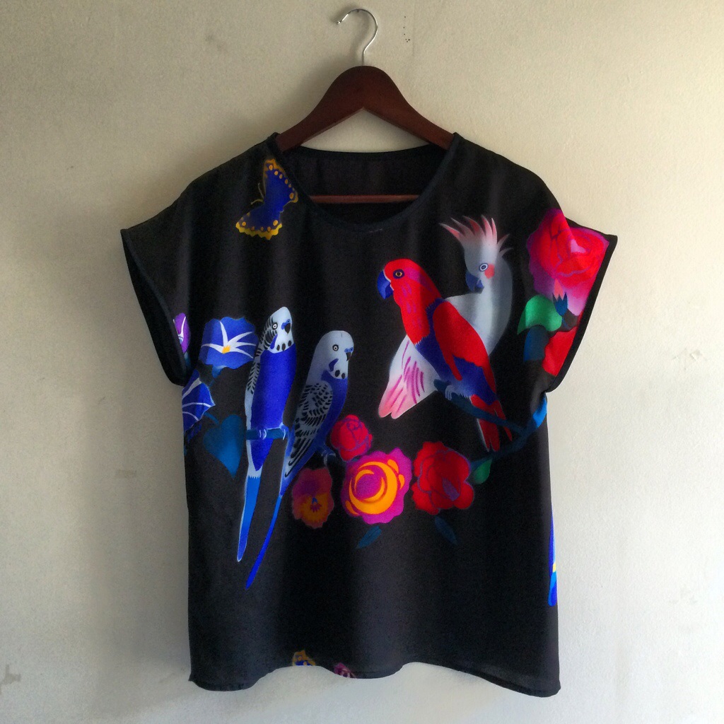 I have showed this blouse both to Natalie and my sis and have their seal of approval. Natalie said that I have worked with the print really well and she is happy to see the parrots again as some of the parrots in the print used to be her pets.
