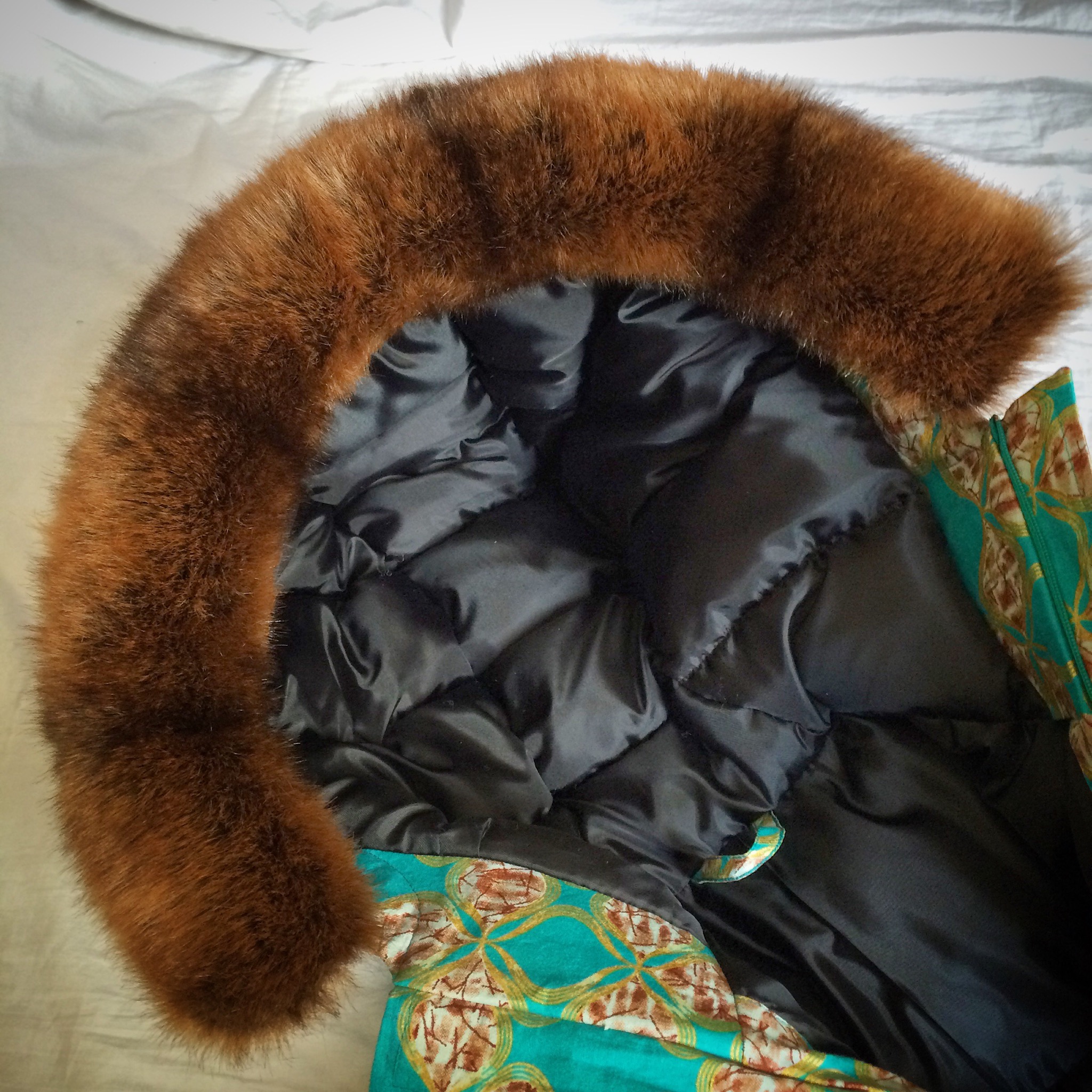 There was a lot of stuffing going on in the lining and this also happened on the fur trim. I felt that the fur trim was a bit floppy so decided to stuff it to get more volume out of it and the result looked amazing. I really regret not getting more of this faux fur fabric as it looks like the real deal but as it came from the roll, I could cut it to any shape I wanted.