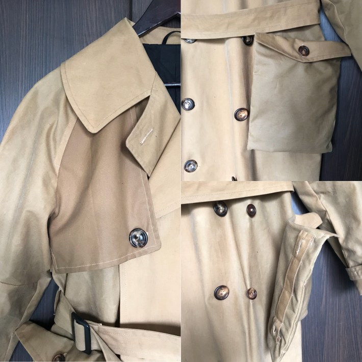 I had the fabric, but the only thing I didn’t have was a trench coat pattern. I knew that I wanted something big and long but apart from that, I was open to suggestions (although it was more like influence). I did some research on the history of trench coats made by Burberry and Aquascutum, looked at some photographs of oversized coats, inspected a WW2 army greatcoat I had and eventually listed down what I wanted for my own coat. I didn’t want to make a faithful reproduction of a trench coat: rather I wanted something of my own design but with similarities to a trench coat.