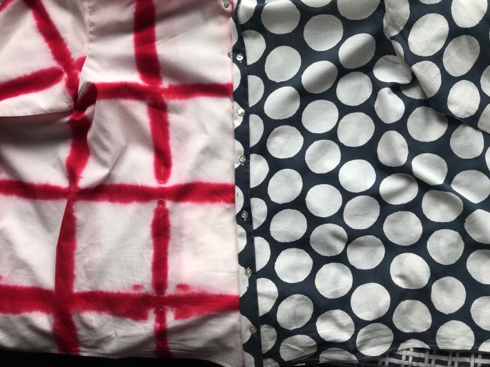 Love that shibori pink fabric – your shirt looks really sharp.