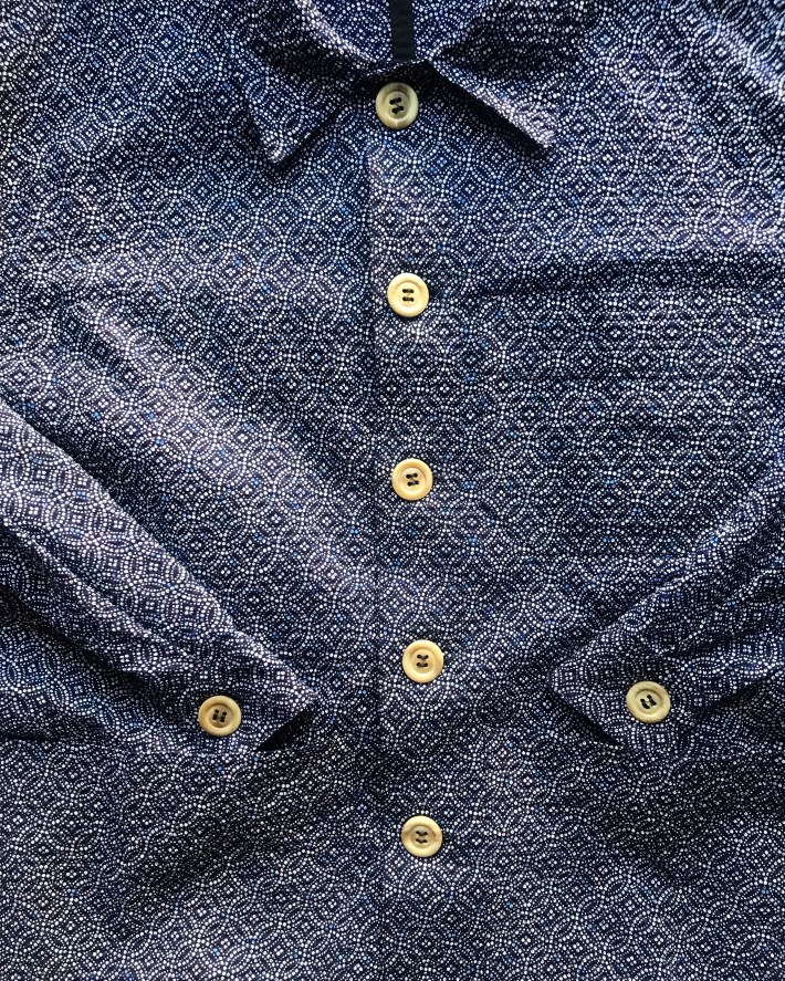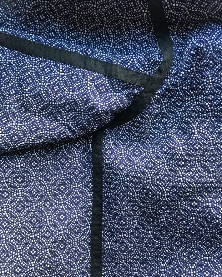 My boss (who happens to be my pattern cutting lecturer) recently went to Japan for business trip. When he returned, he told me stories of the amazing things you can find in the flea market especially old Kimono fabrics. That’s when I saw a roll of fabric on my desk. It was this indigo coloured, spotty fabric which reminded me of Shibori (a painstaking Japanese manual resist dyeing technique) on a textured fabric. I pointed to it and he told me that he got it for me. I was so happy with this gift as the fabric is amazing and surprisingly, something I was looking for to make a summer weight French work jacket.