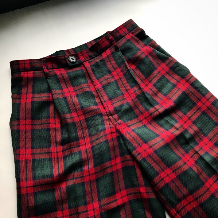 Ranting aside, this conversation came along when I was making myself a pair of tartan trousers. I saw a very pretty Lindsay tartan fabric and had always wanted a vivid red garment (the Chinese see red as a very auspicious colour, hence my attraction to that colour) so instead of wishing for one, I made it myself.
