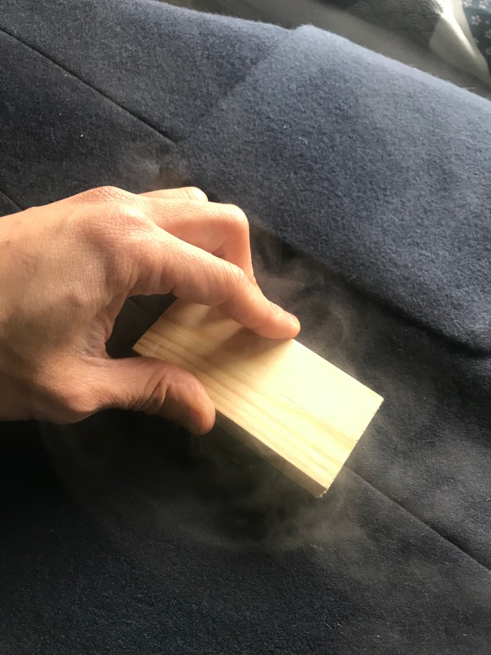 I used everything I knew to construct this jacket. I’d even used a block of wood to press the seams open after a good steam with the iron.