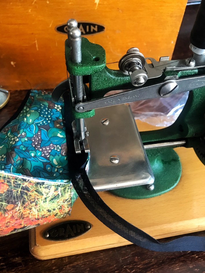 Mastering it was quite easy, so easy a child could use it. But it’s not a toy and the chain stitch produced is immaculate. Cranking the handle to operate the machine was effortless so to fully test this machine out, I decided to make a mask.