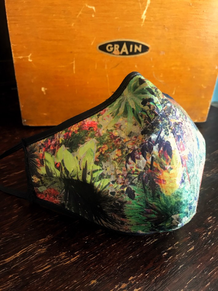 I tested with a piece of scrap fabric and when the tension was correct, I proceeded to crank the handle to stitch together a mask. I still have to get used to the tension as the stitch can get tangled up but when everything goes right, the result is immaculate chain stitching that holds the seams together very well.