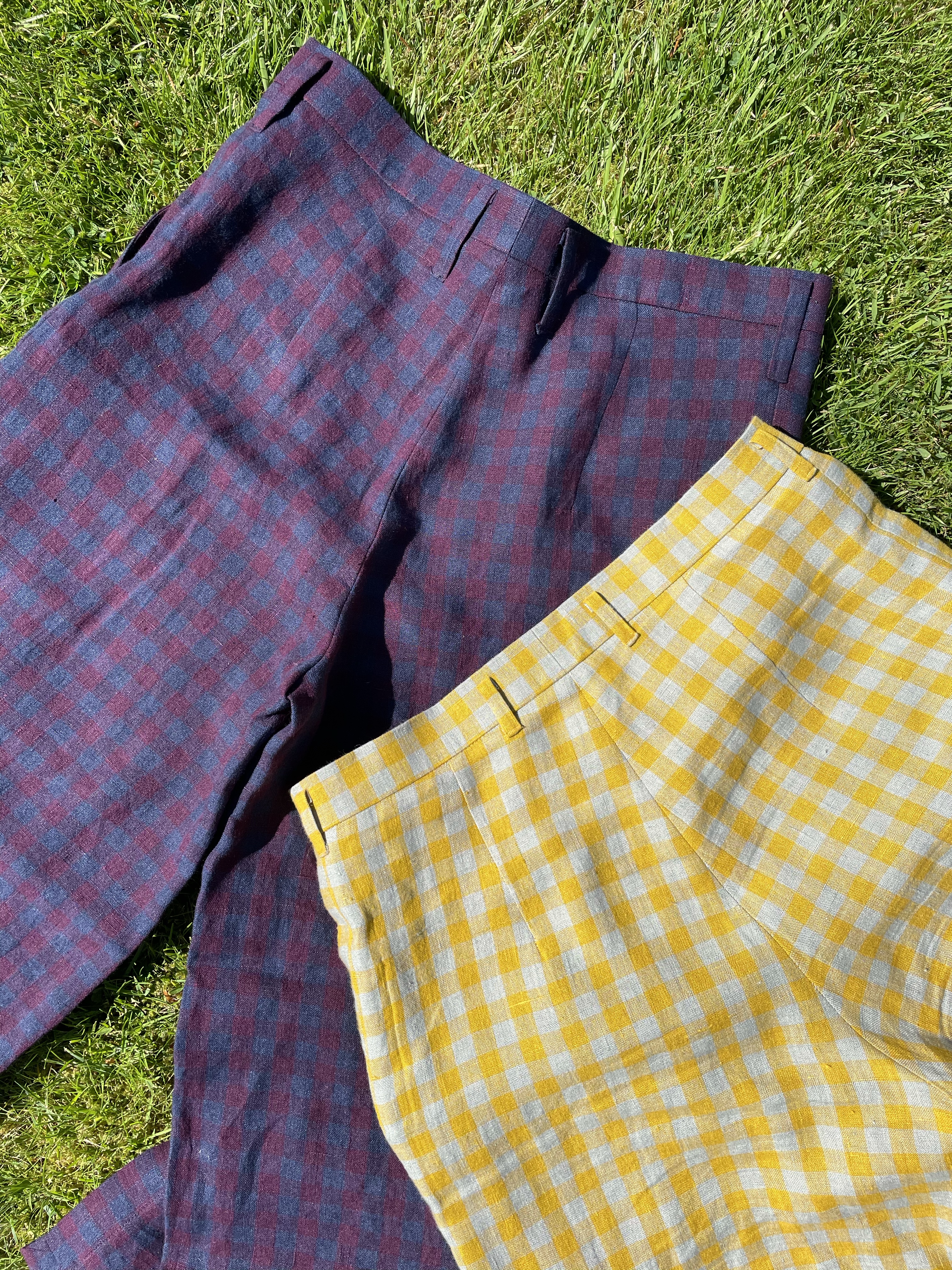 I quickly snapped up the two lines fabric but also added a pure white tencel/linen mix fabric for a shirt I also wanted to make. When it arrived, it dawned on me that I have to match the checks of the fabric when sewing the trousers. I rolled my eyes but kept calm and carried on. I took my time to match, cut and sew these two trousers and the shirt but I savoured that image I had in my mind of what it would look like when it’s completed.
