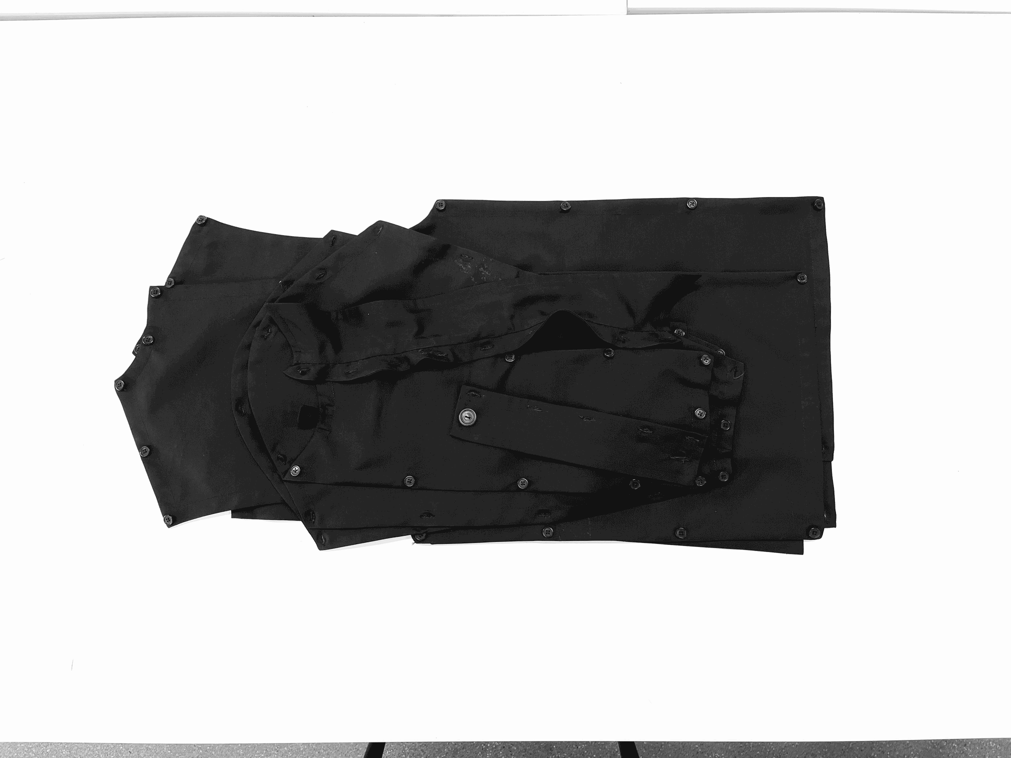 When I wore it to work, my colleagues were kept entertained as they asked me to unbutton bits and pieces of the jacket. This created whole new looks that got them excited. They called it a modular design because I can create new elements and swap it when I want to. The piece will keep on evolving with interchangeable parts and eventually, morph into something completely different but at the same time, have the option of returning to the original. In theory, I will never wear the same garment as it can always change by an unfastening of a button and in essence, never be out of trend.