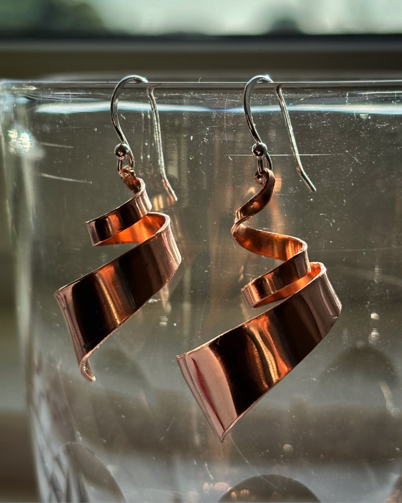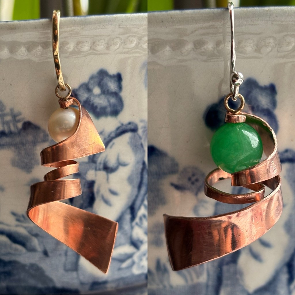 The only problem I had now was the scraps from my project. I felt that it was a shame to throw these curled copper offcuts away, but doubted I could recycle such small quantities. I left the scraps in a box stored away in the attic until recently, when a visitor wore some earrings that looks like they were made out of a piece of beaten copper wire in a serpentine shape.