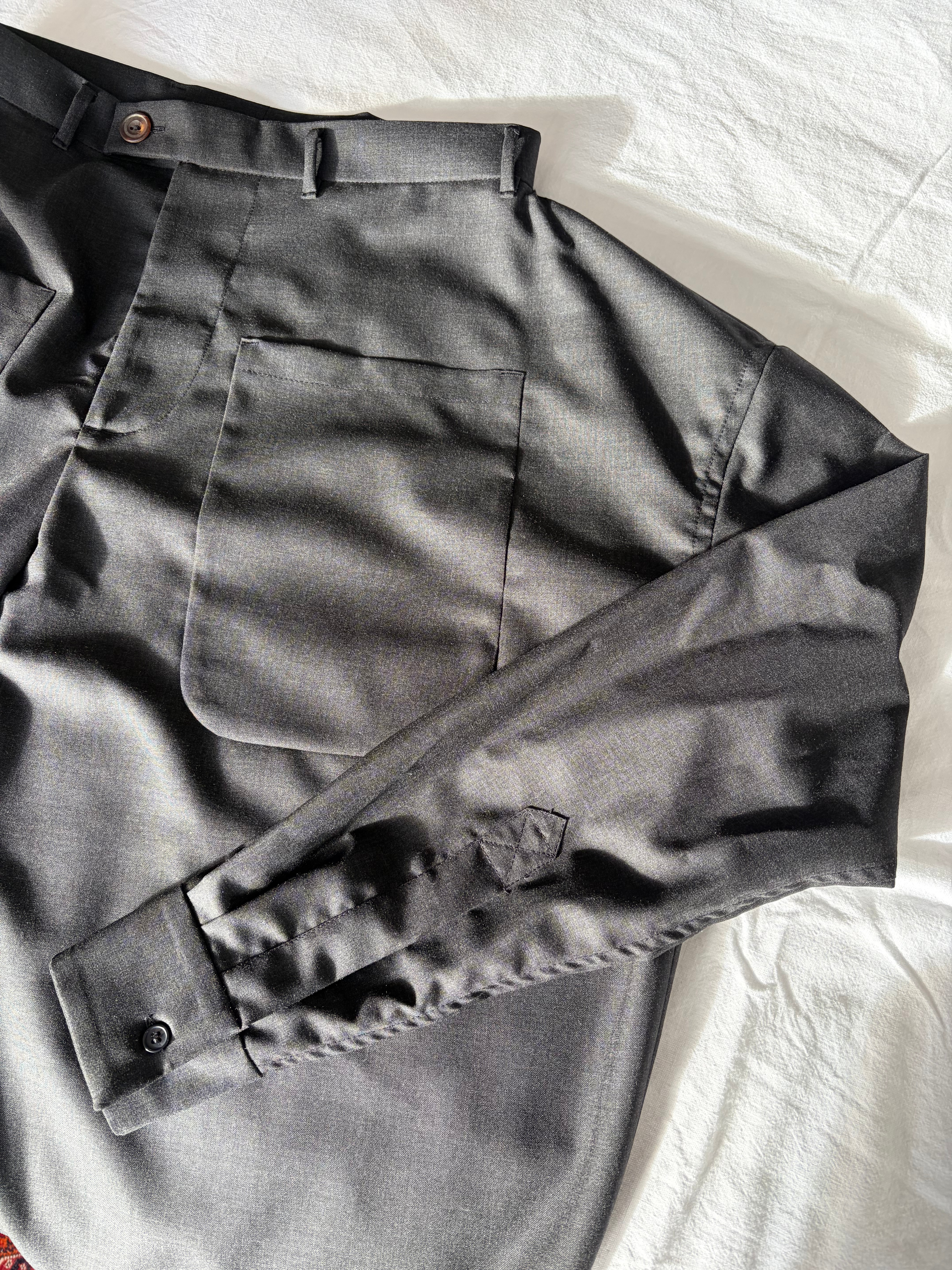 I have also utilised the shirt pocket for the trousers and sewed in a bluff pocket. This was very handy as the position of the sleeve meant that side pockets could not be inserted. Skimping on the details is not something I do, so I went all the way to insert a working sleeve with a placket, cuff and buttonhole.